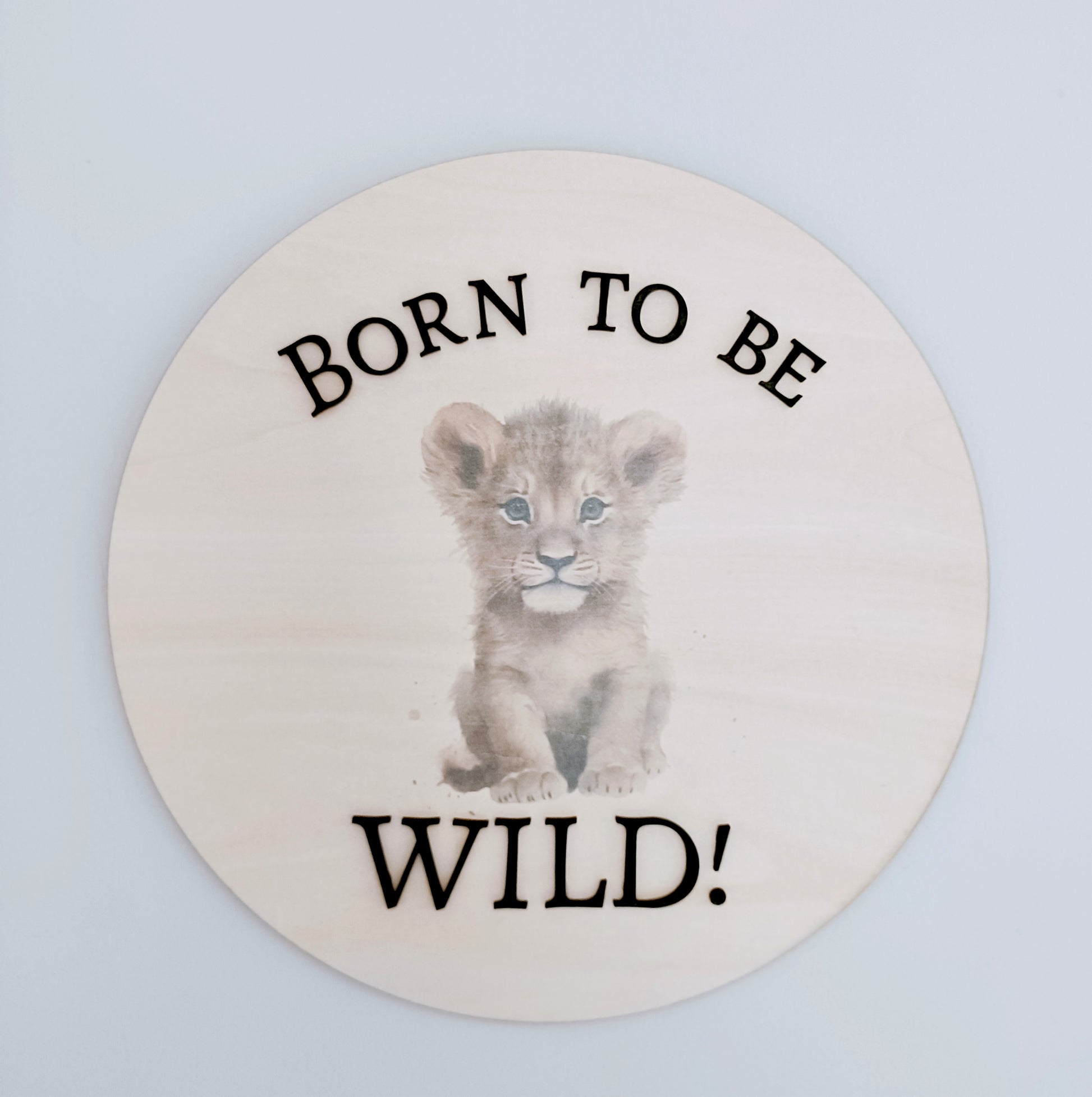 Printed lion cub design, enhanced with black 3D lettering.
